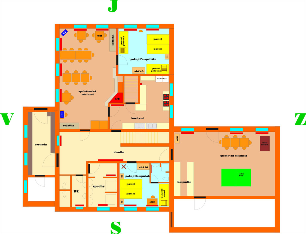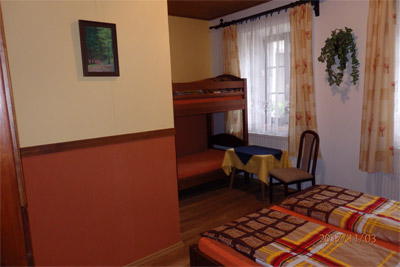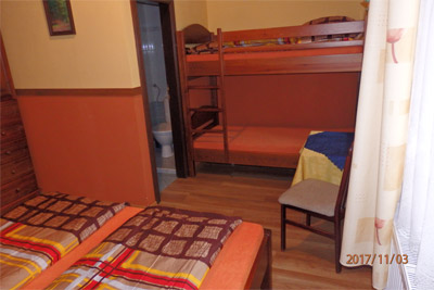Pokoj pro 6 osob, 2 patrové postele, sociální zařízení na patře